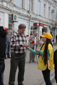 9 мая местные справедливороссы пришли на городскую площадь чтобы поздравить жителей города с праздников Великой Победы.